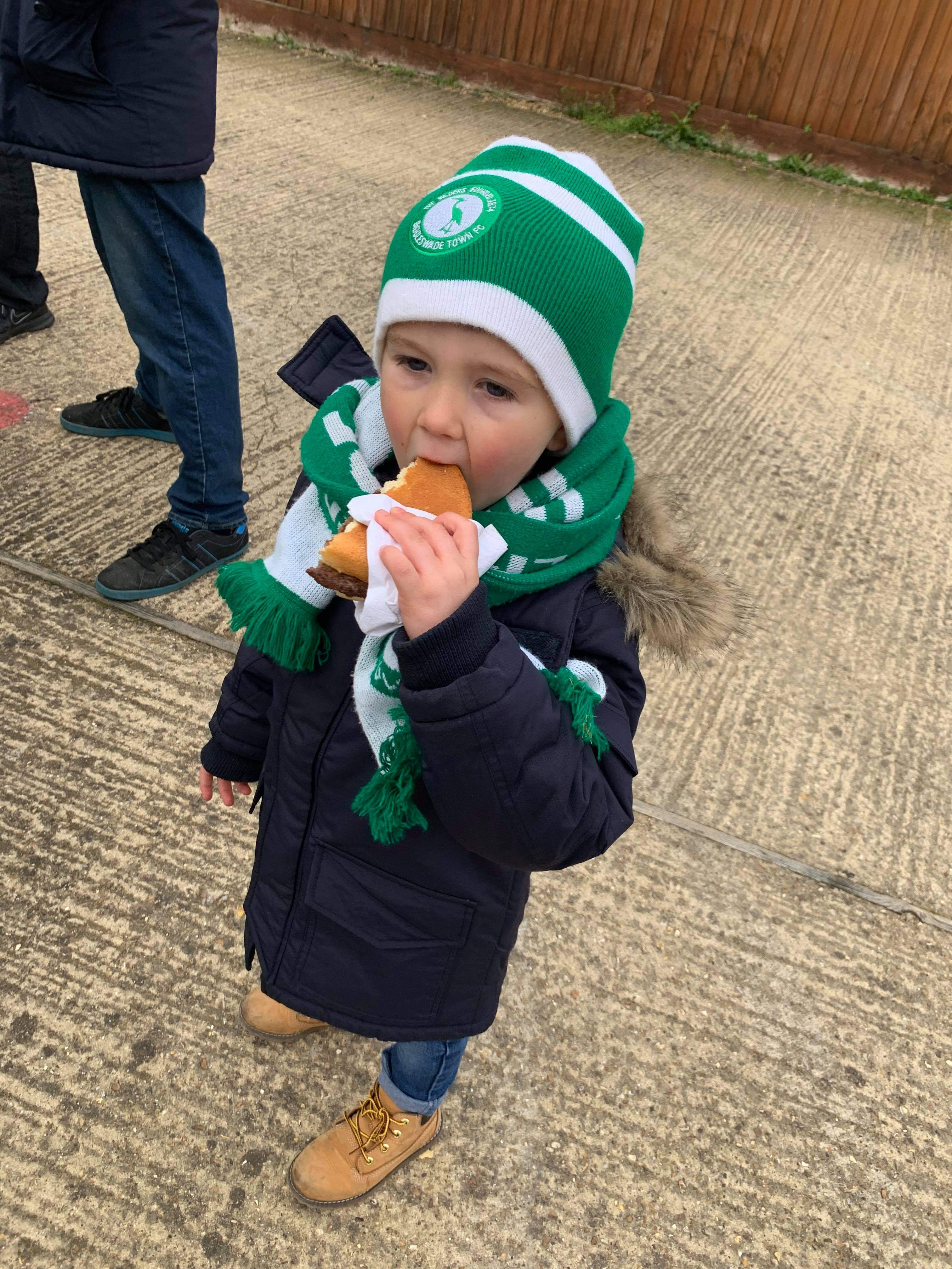 Big Dave K treated Lew to a burger before kick off that Lew kindly shared with Grandad 🍔 there wasnt a soggy chip in site…🤣