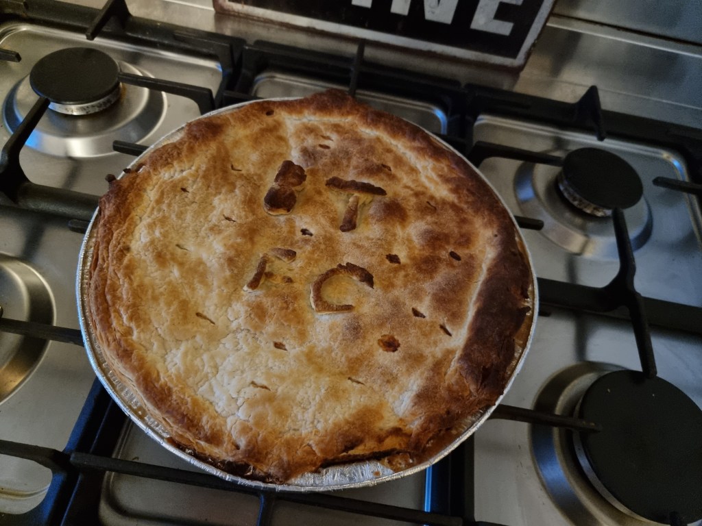 Almost forgot to report – the pie did get delivered and it was very good to- although enough to feed 10!