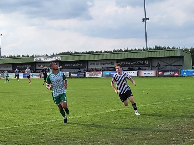 Out for the 1st half Dereham looked to be the bigger side physically, but on the pitch it was fairly even. Waders 1st opportunity was Jon Clements with a close range shot well saved by the home keeper. There were few other chances in the 1st half and we went in at the break goaless.